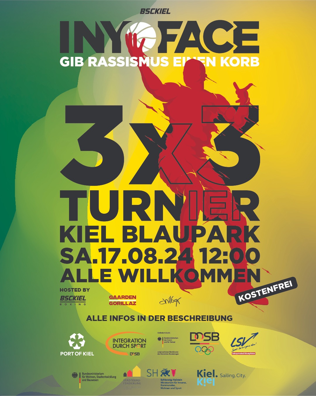 Das 3x3 Streetball-Event im Blaupark (Sport- und Begegnungspark Kiel Gaarden) steht wieder vor der Tür. Zusammenzukommen, Ballen und ein starkes Zeichen gegen Rassismus setzen. Alle sind willkommen, mitzumachen! Freut euch auf ein spannendes Turnier mit Vorrunden und Finalspielen, 3-Point-, Blindshot- und Dunkcontests. Zusätzlich bieten wir Live-Musik, Tanzvorführungen und leckeres Essen vom Grill, sowie Trophäen und kleine Preise.